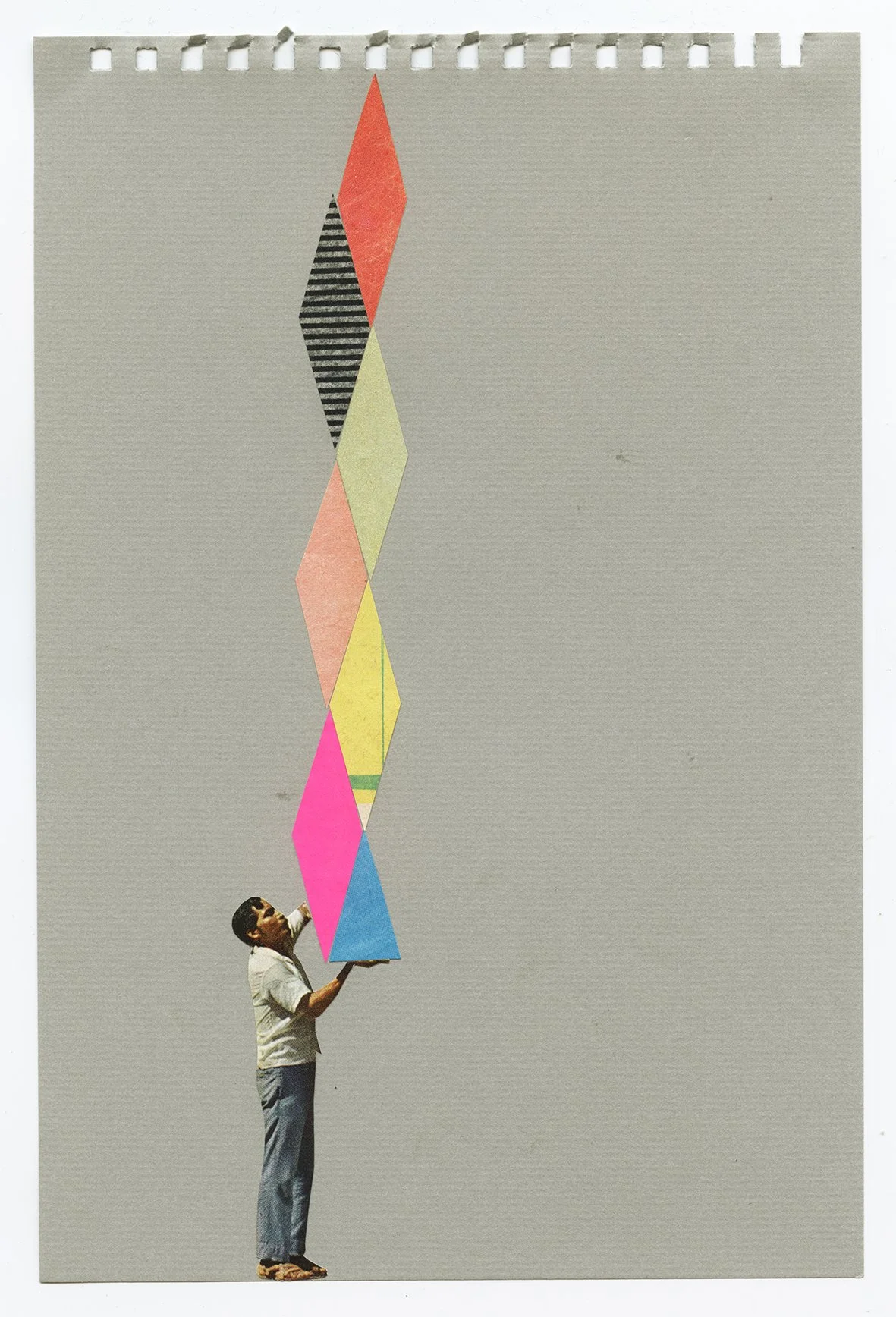 Yes. I've seen people when they look at my work, they’ll laugh or smile, because there are funny things in there. And I think I try to make them funny or witty as well. They’re funny but also with a bit of cleverness in terms of the combinations that you put together. What comes first, you generally have a small number of elements within your collage. There's generally a person in there and then you have the graphic shapes.