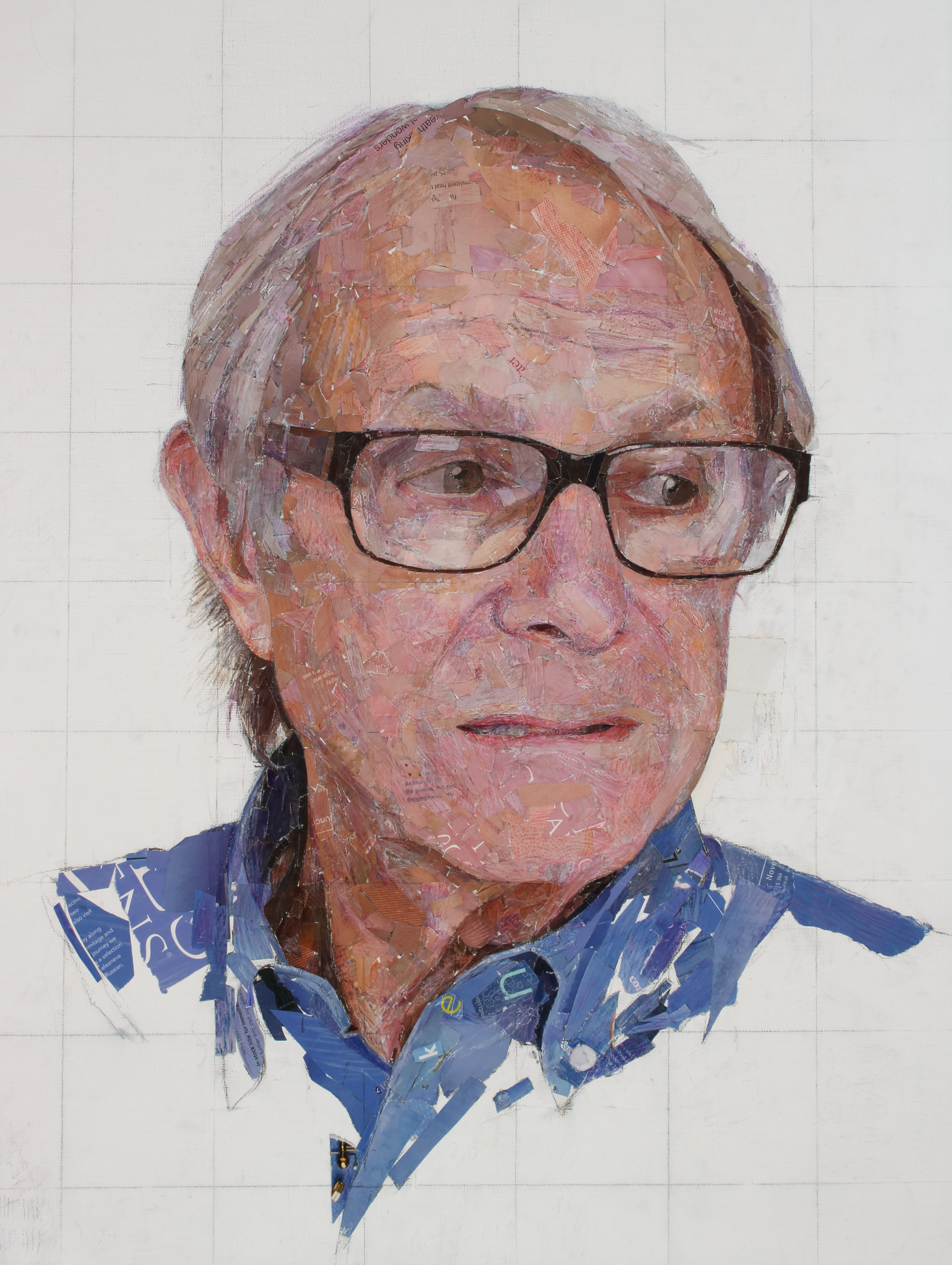I saw Ken Loach at a Royal Society of Portrait Painter’s private view and, although I didn’t know him, I went up to him and asked him if I could do his portrait. I’m a big fan of his, and he was absolutely lovely. He asked me if I had any work exhibited there. He liked the collage portrait I showed him and agreed to have his portrait made. I phoned his PA and arranged a time to take photographs of him to use as reference. He’s incredibly humble, not remotely vain, so the idea that he would have commissioned a portrait of himself is unlikely!