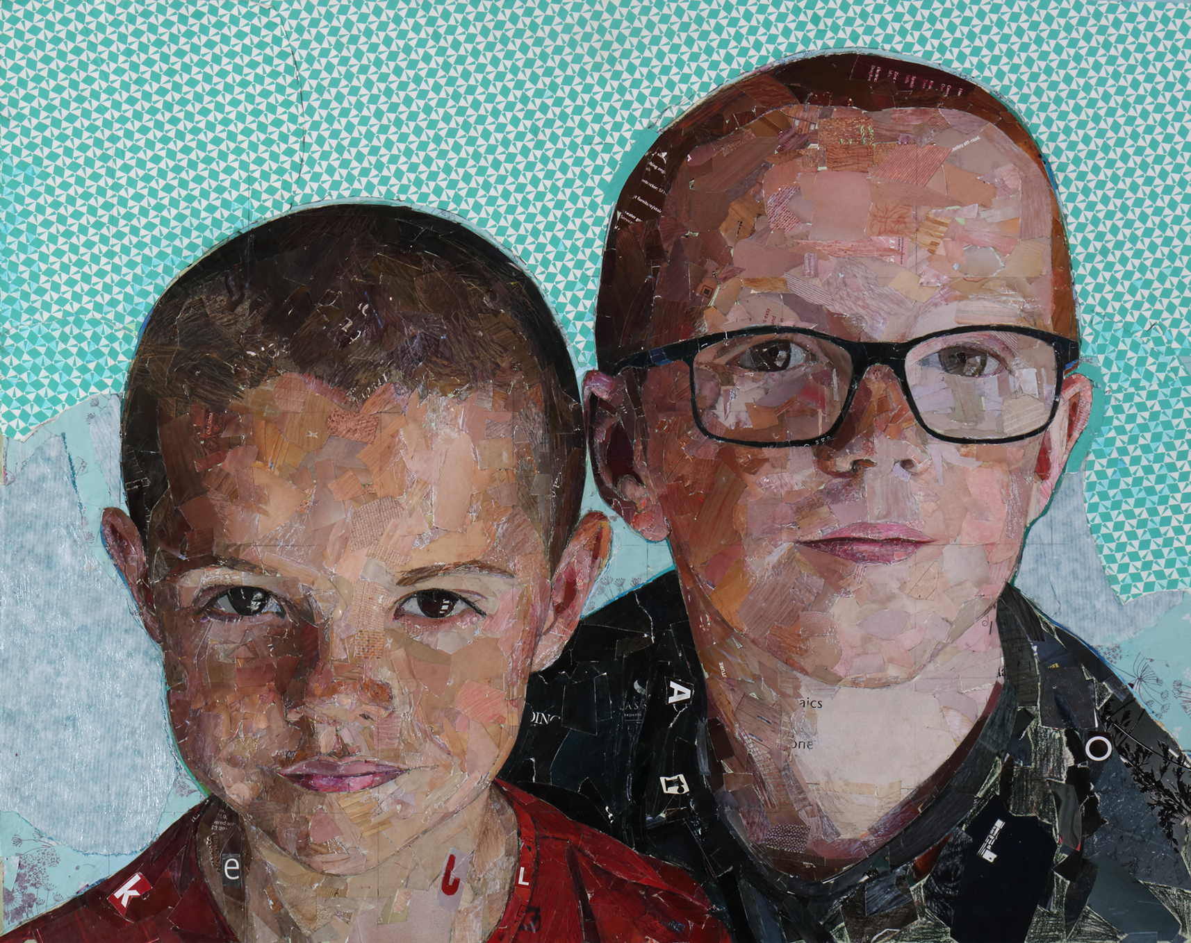 With regards to my process – I have done a lot of portraits of children. I’d meet them, photograph them, ask them about themselves, and then I would work from photos to decide on a composition. From there, I would draw the outline. I’ve got boxes of magazines and I normally sit next to my window for the light and the displacement activity of sussing out the street action in our busy street! I rifle through magazines until I find the colours I want and match them to the photographic reference I have and then I start to build up a picture firstly with bigger pieces, then gradually smaller and smaller ones. I usually focus on the facial features first.